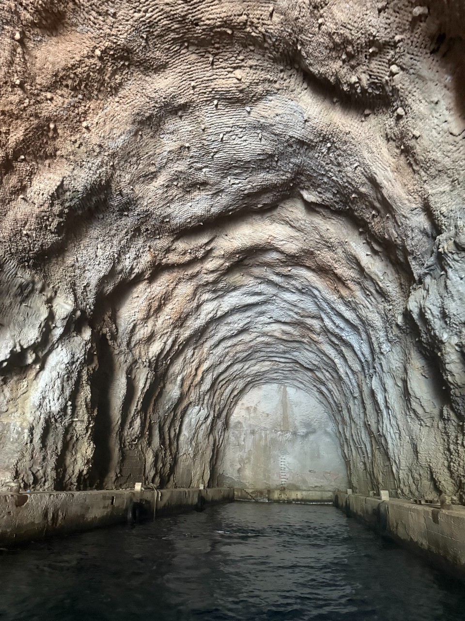 Continue your journey through the Bay of Kotor as you cruise from Our Lady of the Rocks to a hidden World War II-era submarine tunnel. Surrounded by dramatic cliffs and calm waters, this unique stop offers a glimpse into Montenegro’s secret naval history. - VISIT SUBMARINE TUNNEL (5min)